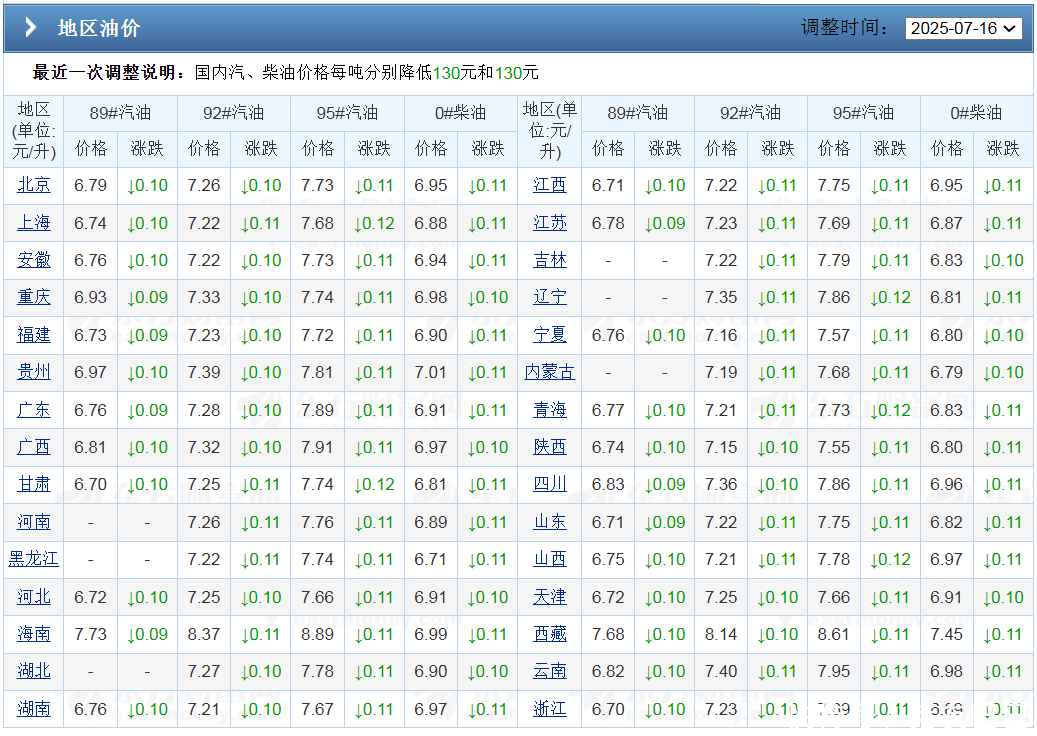 从数据了解,截至2025年8月25日,此次汽柴油调价的10个工作日完成90%,按照油价形成规定,参考上周末原油变化,本轮周期最新原油品种平均值在64.88美元/桶,参考最新原油变化率-4.18%,油价预估下降205元/吨,降幅减少10元/吨,折合此次汽柴油下降0.15元/升左右!